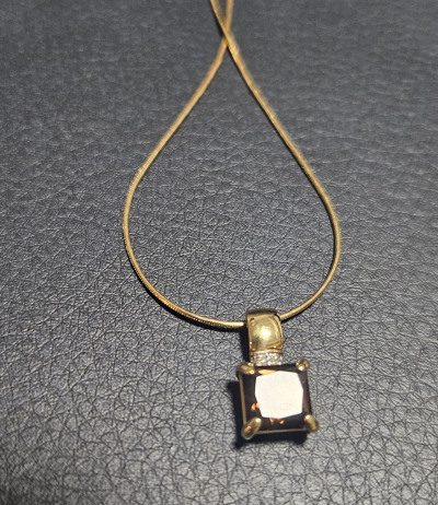 Золотая подвеска с кварцем дымчатым и бриллиантами