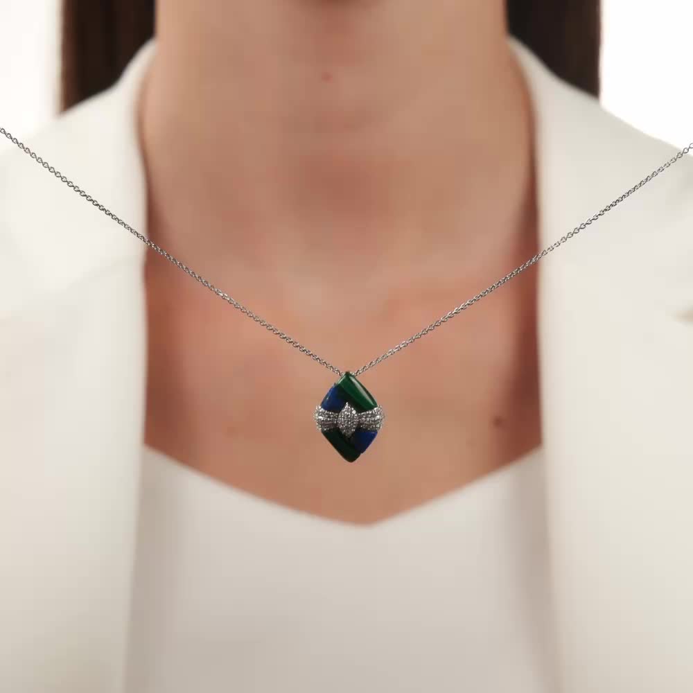 Серебряная подвеска с лазуритом, фианитами и малахитом