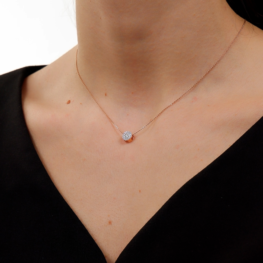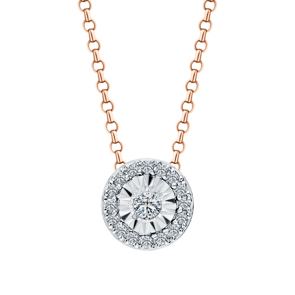 Подвеска с 1 бриллиантом природным, 0.03 карат, огранка круг 57 граней, цвет 3, чистота 5, тип огранки А;