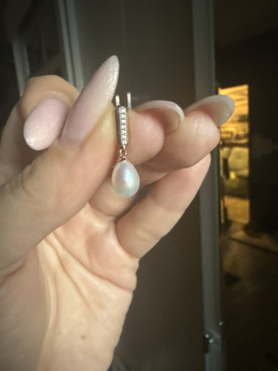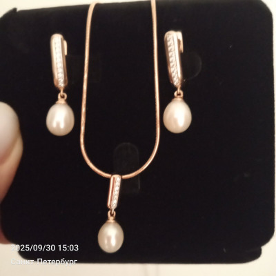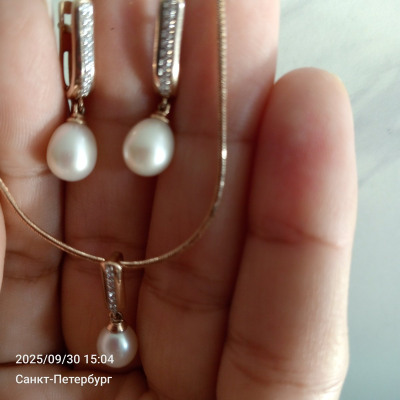 Подбирала подвеску к серьгам. Подвеска очень эффектная! Любовь с первого взгляда). Но нужно учитывать, что жемчужины имеют различные размеры, форму и оттенок перламутра. Из трёх заказанных одинаковых изделий к серьгам по всем параметрам подошла только одна. Теперь любуюсь, глаз не отвести! Спасибо Sunlight за такую красоту!