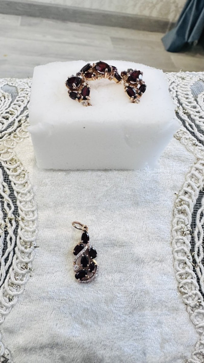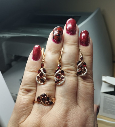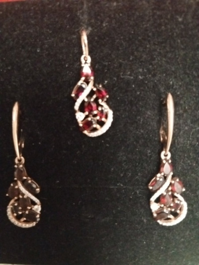 Подвеска с гранатами и фианитами отлично подошло в комплекту из сережек и кольца.