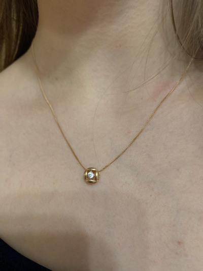 Подвеска милая и аккуратная. Прекрасно смотрится на разных цепочках. По центру находится небольшой фианитик. Красиво переливается при любом освещении.