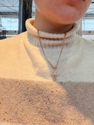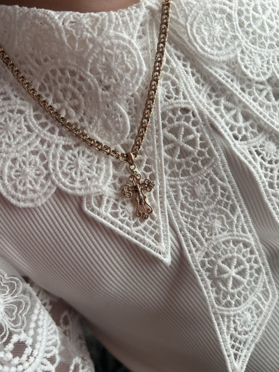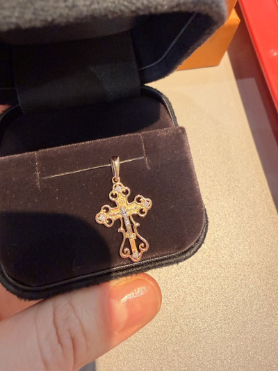 Очень нежный и красивый крестик. Не выделяется и в то же время привлекает внимание. Обошла много магазинов,но ничего не нашла и в душу запал именно он. Вернулась и взяла. Подкупило то,что вставки бриллианты и пожизненная гарантия на ремонт.