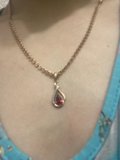 Золотая подвеска с бриллиантами природными и рубинами выращенными