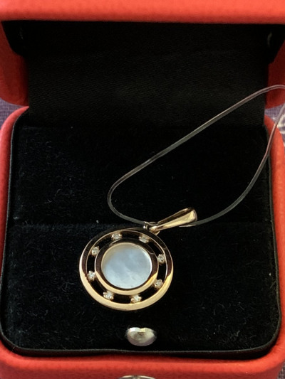 Золотая подвеска с бриллиантами природными и перламутром природным
