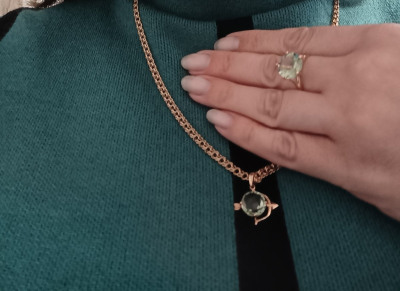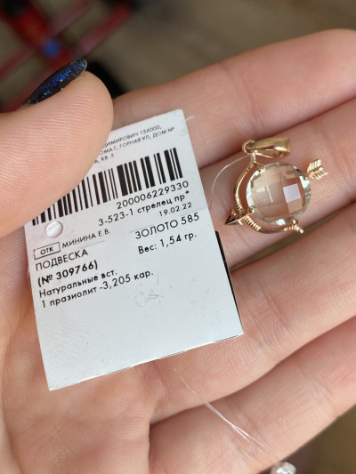 В редких случаях характеристики украшения или упаковка могут иметь отличия от представленных на фото или в описании.Подвеска с 1 празиолитом природным, тип огранки Б;