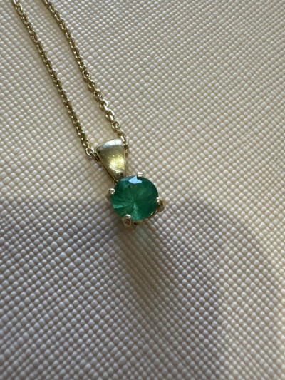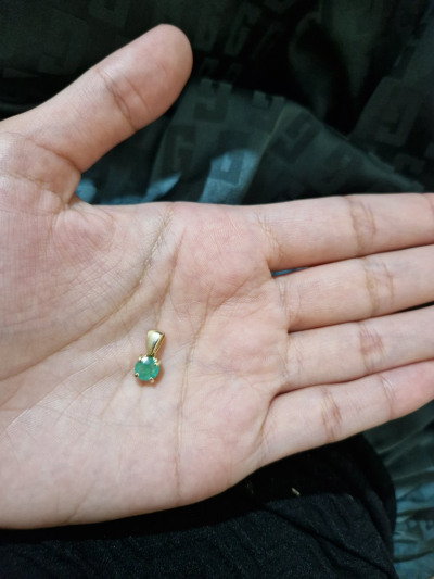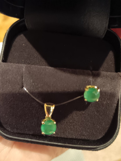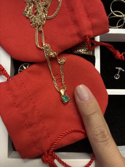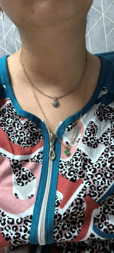 Подвеска очень красивая. Хорошо сочетается с пусетами и кольцом. Изумруд натуральный, слегка мутноват, цвет его меняется в зависимости от освещения