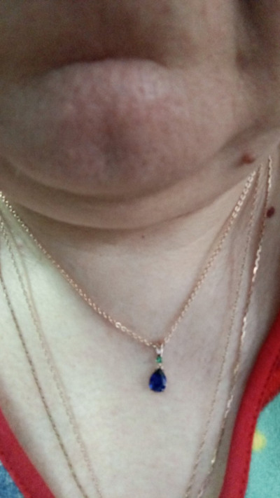 Замечательный кулон. Сапфир и изумрудик. Такое соединение и искала. Не маленькая. Красивая и нежная капелька