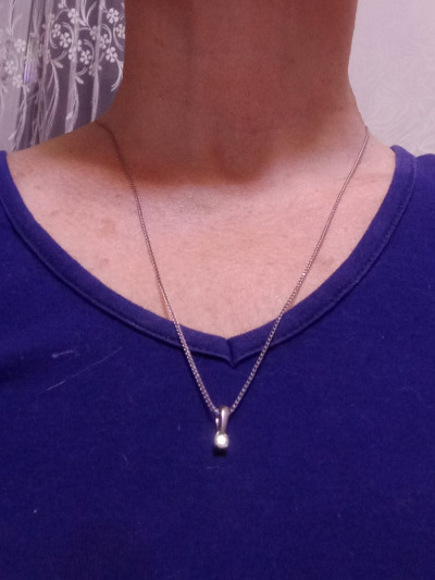 Подвеска маленькая, но на короткой цепочке смотрится хорошо. Камушек очень красиво сверкает. Минус подвески в том, что она переворачивается и приходится постоянно быть начеку.