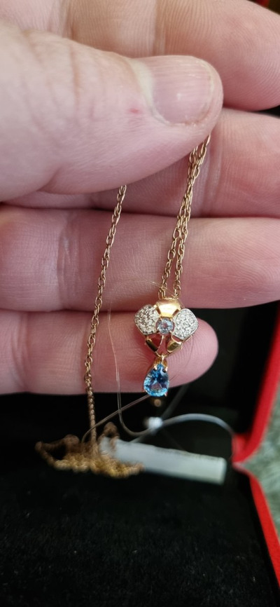 Очень миленькая подвесочка с топазиком. Заказывала через сайт, в магазине получила, мне очень понравилась, вот и забрала.