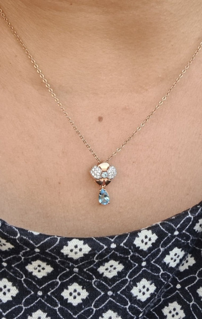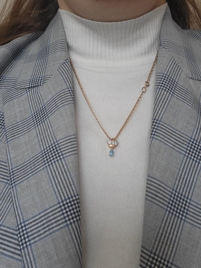 Очень нежная и очаровательная подвеска с топазом, которая просто притягивает взгляды. Подойдет на тонкую цепочку якорного плетения, на фото на цепочке 40 см На толстую цепочку не подтйдет, одевается, но нет свободного движения. Покупайте, не пожалеете! Брала в комплект к сережкам