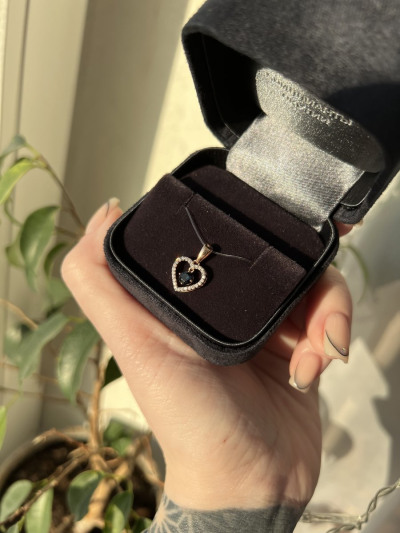 Красиво переливаются бриллианты на солнце, в центре темный сапфир, искала подвеску на толстую цепочку, эта оказалась в самый раз 👍🏻