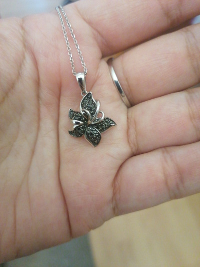 Подвеска из белого золота с чёрными бриллиантами изколлекции орхидея, покупкой очень довольна , она дополнила образ сережек и кольца
