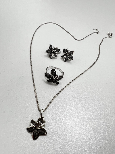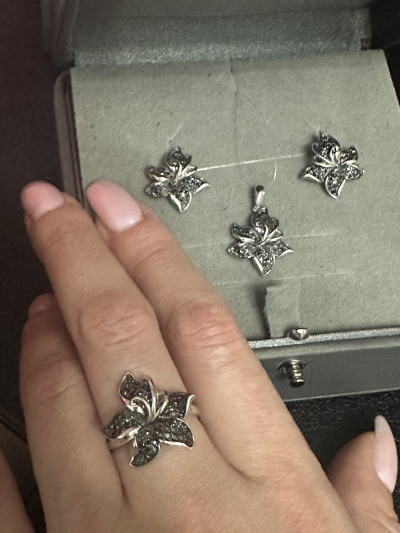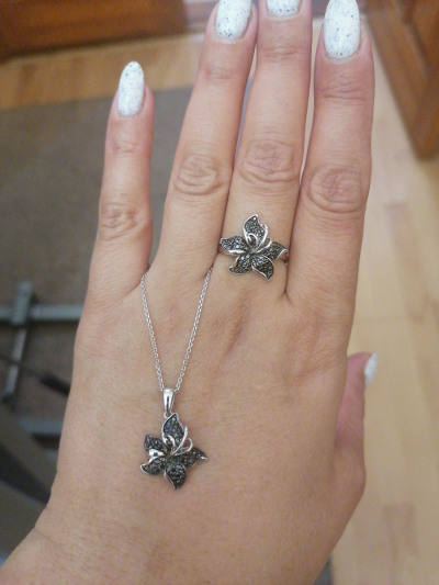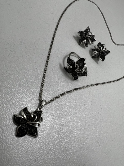 Милая подвеска в виде цветка черной лилии 🌺, приобрела гарнитур с сережками, кольцом и подвеской 😍