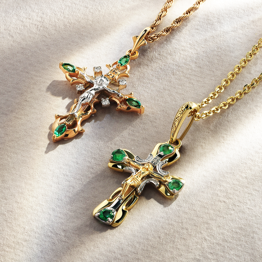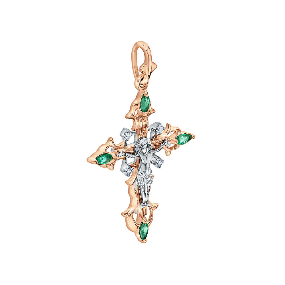 Золотая подвеска с бриллиантами природными и изумрудами природными