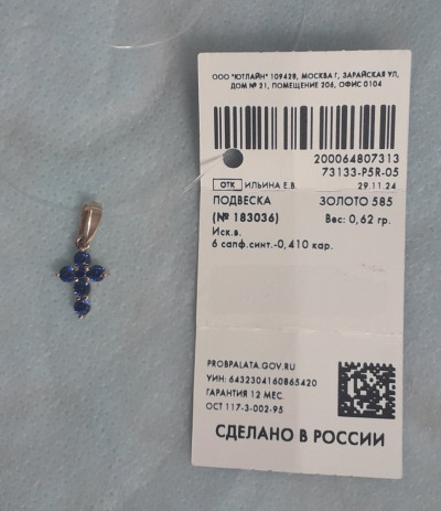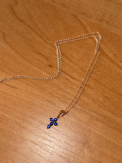 Небольшой и красивый крестик из выращенных сапфиров подойдёт как детям, так и взрослым любителям минимализма! Или как второй подвес на короткую тонкую цепочку на шее)