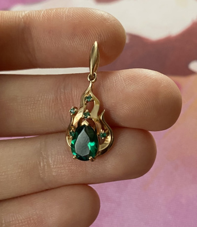 Золотая подвеска с изумрудами выращенными