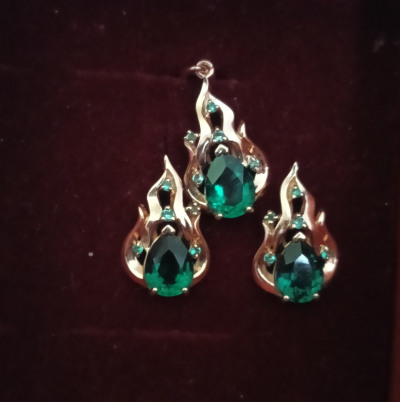Эффектная подвеска, камень яркий, жаль купила до акции. С серьгами и кольцом собрался гарнитур украшений с изумрудами, которых у меня раньше никогда не было.