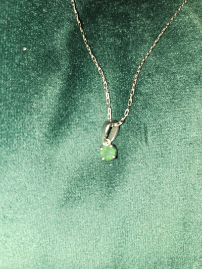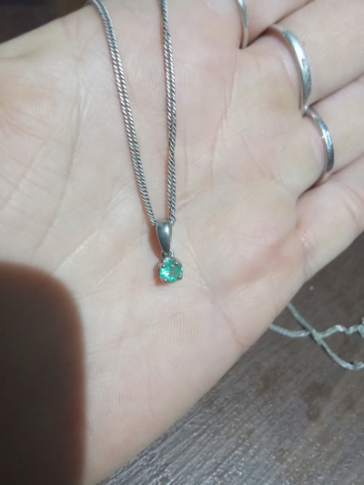 Маленький серебряный кулон, но с драгоценными изумрудом. Цена и качество отличное.