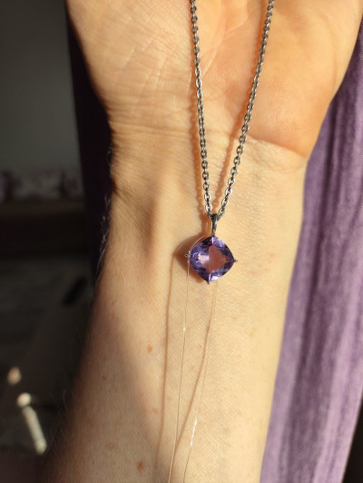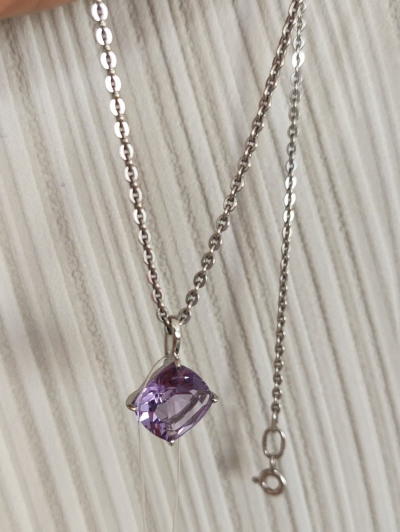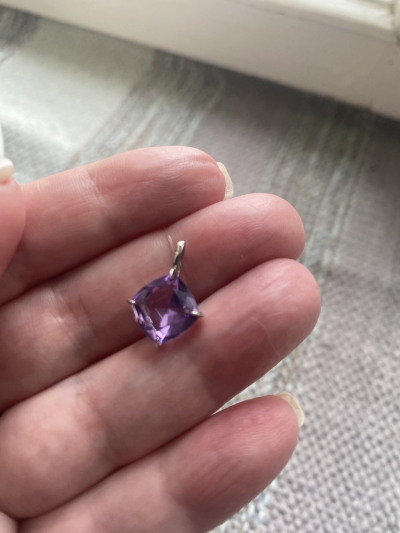 В редких случаях характеристики украшения или упаковка могут иметь отличия от представленных на фото или в описании.Подвеска с 1 аметистом природным, 3.37 карат;