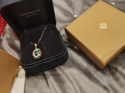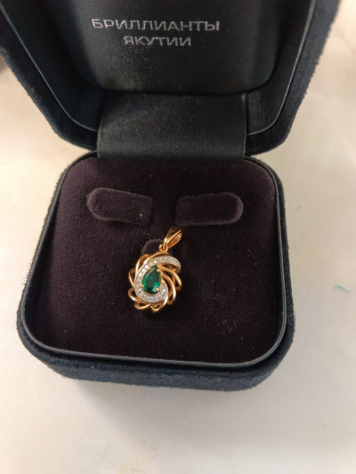Золотая подвеска с бриллиантами природными и изумрудами выращенными