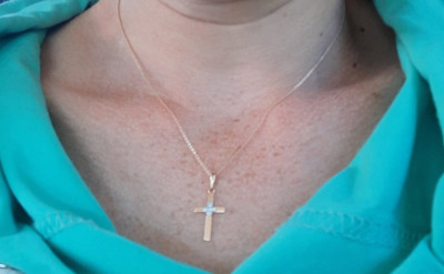 Очень славный, миниатюрный крестик! На солнце смотрится очень эффектно!