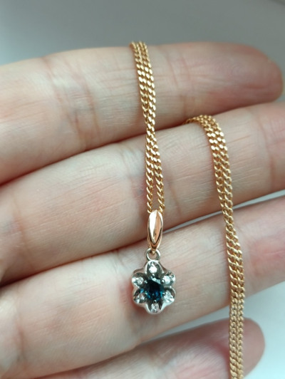 Золотая подвеска с бриллиантами природными и сапфирами природными
