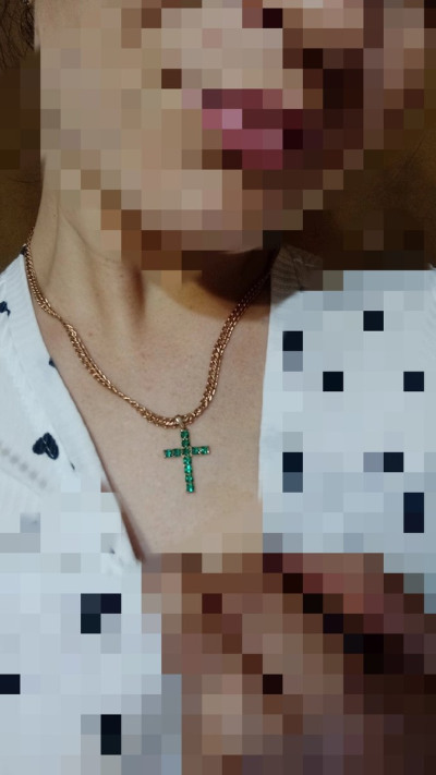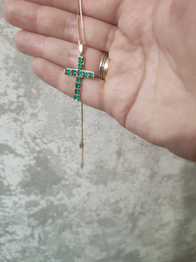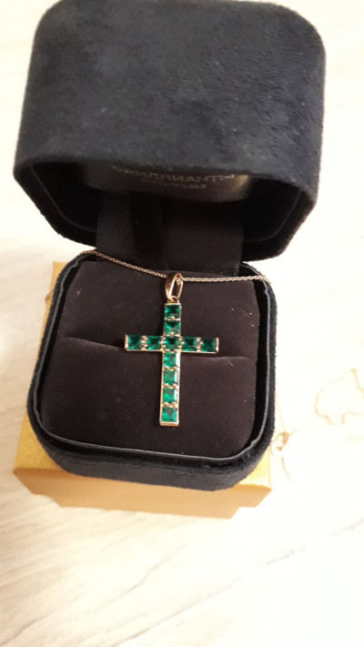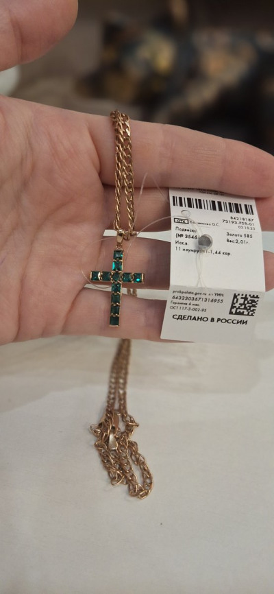 Крестик из красного золота с изумрудами. Очень красивый. Качество-100%. К покупке рекомендую.