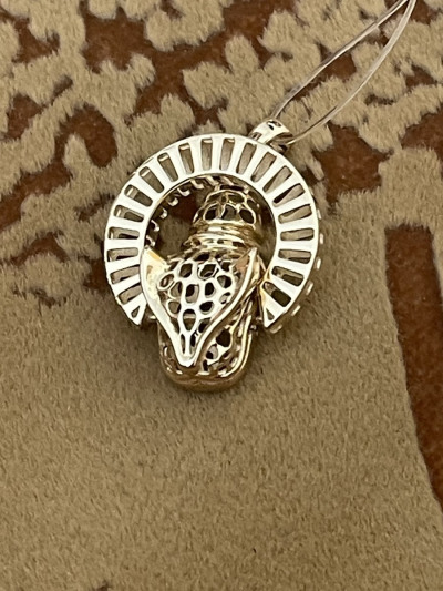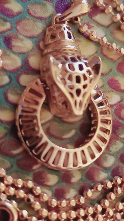 Лёгенькая,небольшая ,звенящая подвеска с головой гепарда, но мне напоминает голову китайского дракона без рожек)) длина подвески 3 см,ширина кольца 1.5 см,высота ушка 0.5 мм ширина отверстия под цепочку 2-3 мм. Т.е. под тонкие цепочки или плоский снейк,ну и 3ой бисмарк.. не более чем 0.4 высотой и 1.6 толщиной.. к крупным цепочкам не подходит..