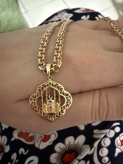 Золотая подвеска с бриллиантами природными и изумрудами природными