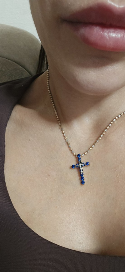 Золотой крест-подвеска с сапфирами