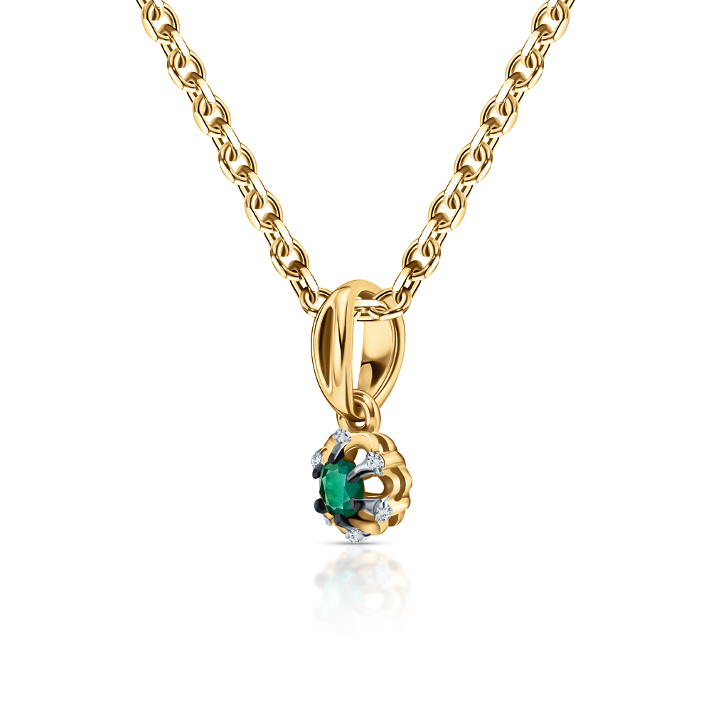 Золотая подвеска с бриллиантами природными и изумрудами природными