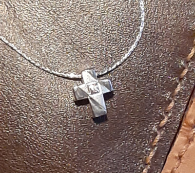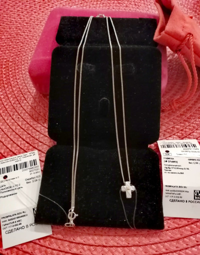 Крестик маленький, но очень милый, деликатный и ненавязчиво смотрится . Рада, что удалось собрать комплект спустя 2 года