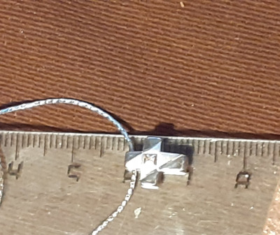 Очень славный крестик! В длину всего один сантиметр, но объемный по рёбрам, аккуратный, красивый. Эффектная диагональная матовая полоса, на ней золотой квадратик, в центре которого крошечный бриллиантик. К сожалению, очень сложно всё это передать на фото. Петелька в верхнем ребре, немаленькая, при носке крестик переворачиваться не будет. Для любителей изящных штучек. Покупкой довольна.