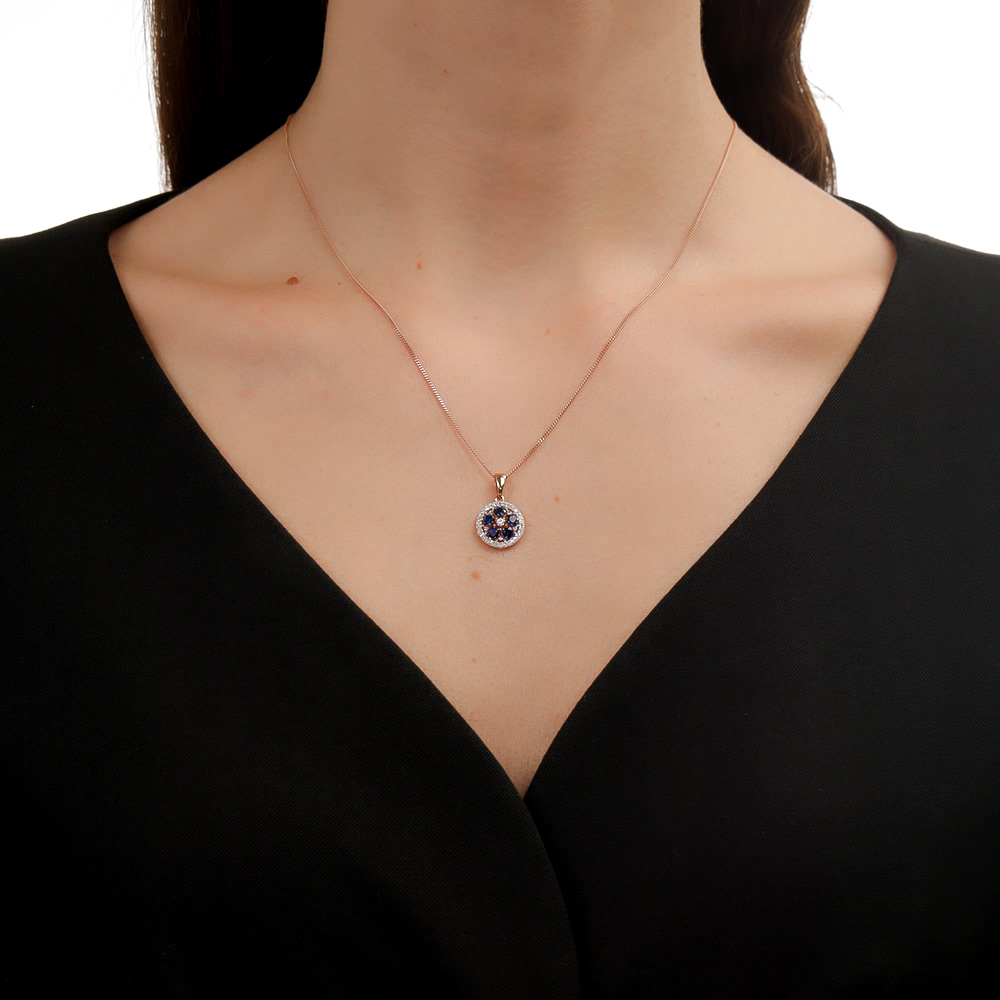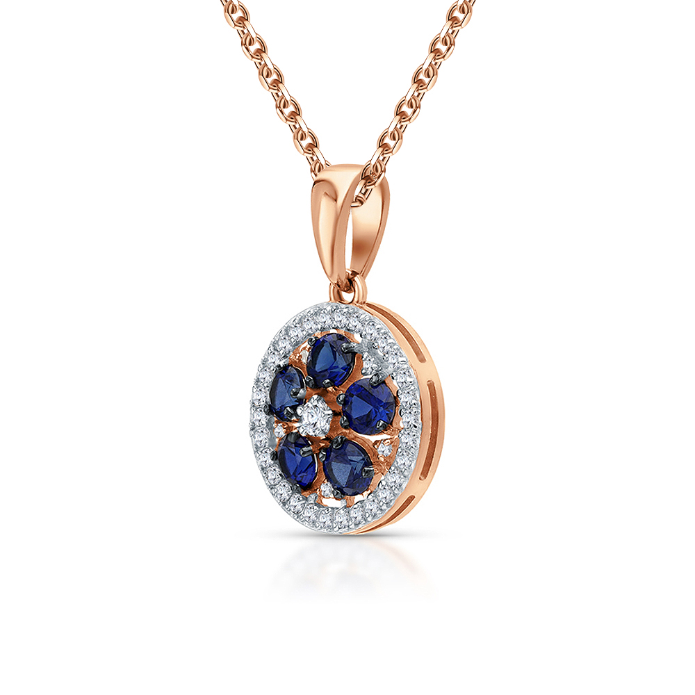 Золотая подвеска с бриллиантами природными и сапфирами выращенными