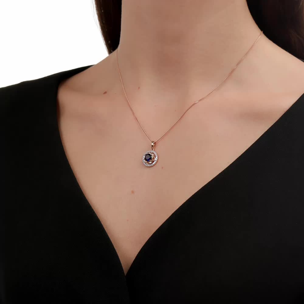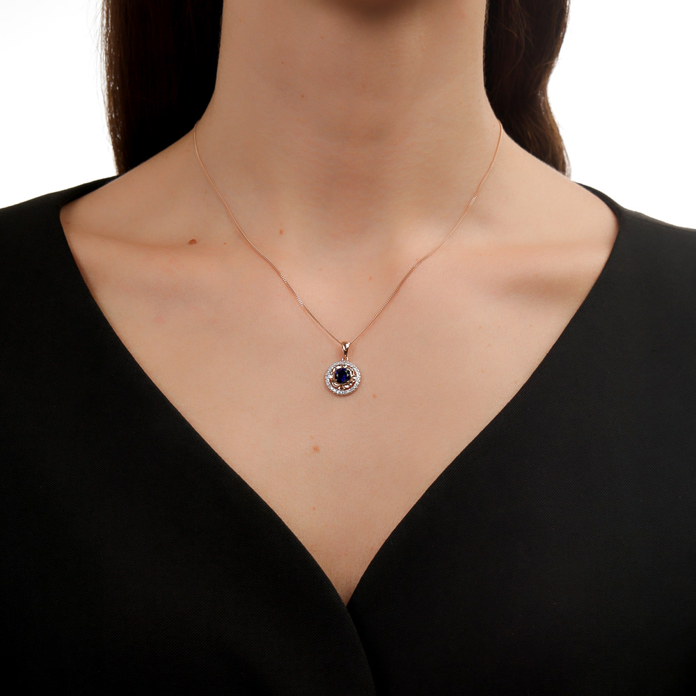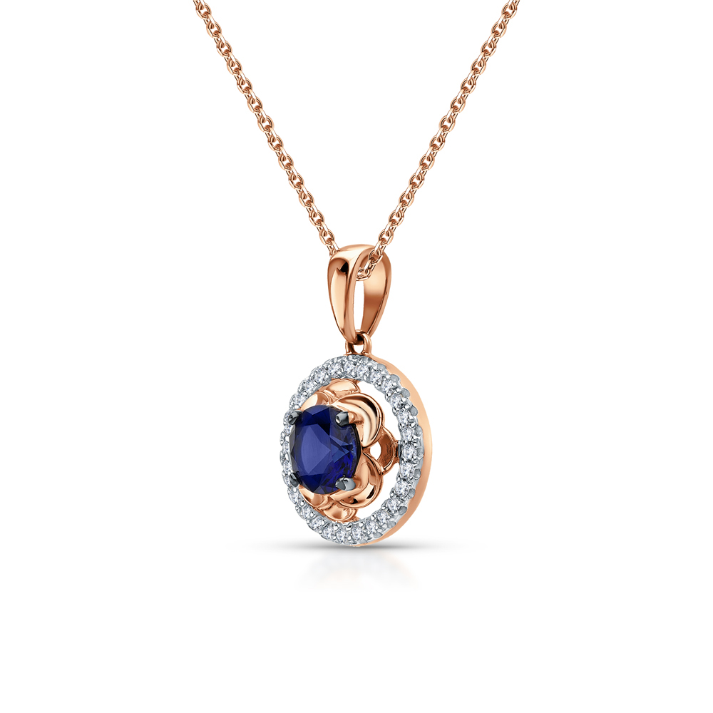 Подвеска с бриллиантами природными и сапфирами выращенными
