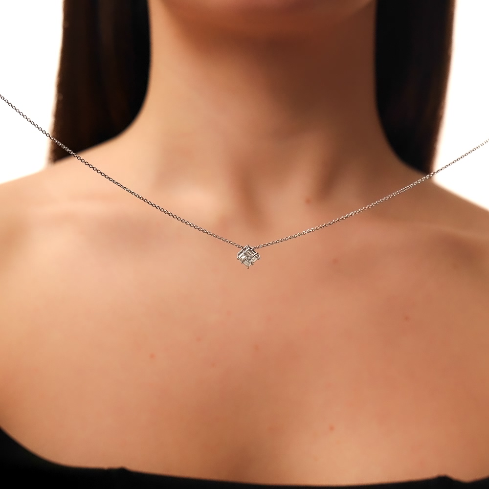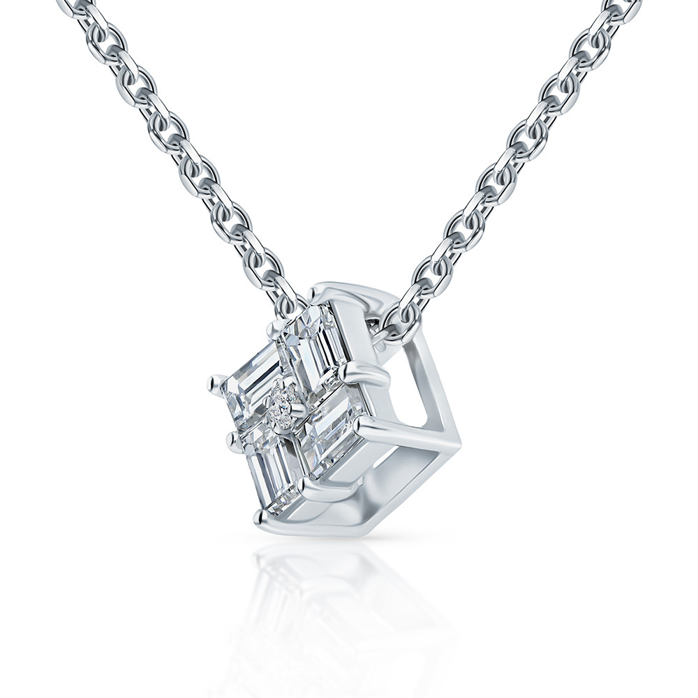 Подвеска с 4 бриллиантами выращенными, 0.35 карат, огранка багет 33 грани, цвет 3, чистота 5, тип огранки А;