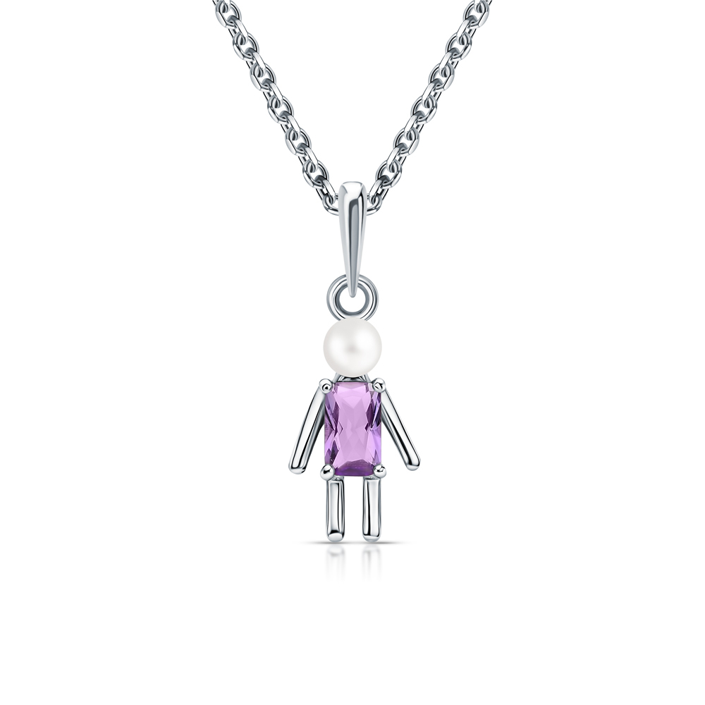 Серебряная подвеска с жемчугом и аметистами природными