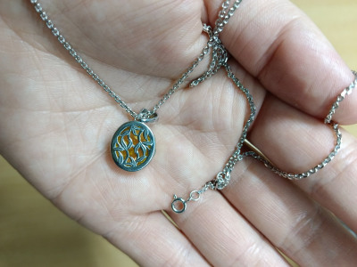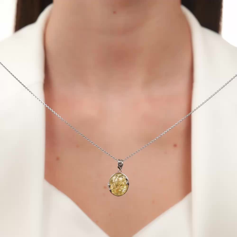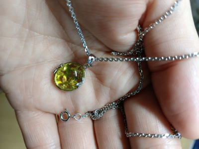 Серебряная подвеска с янтарями природными
