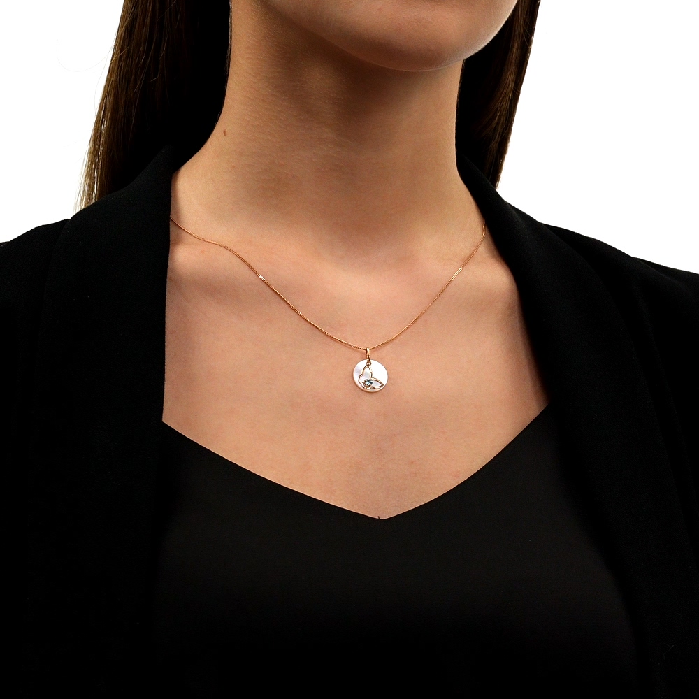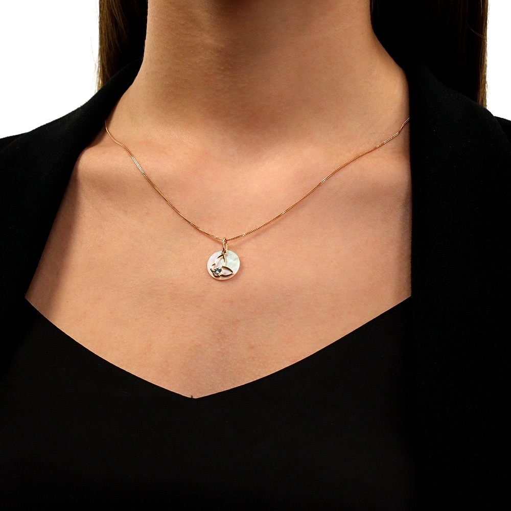 Золотая подвеска с перламутром природным и топазами природными