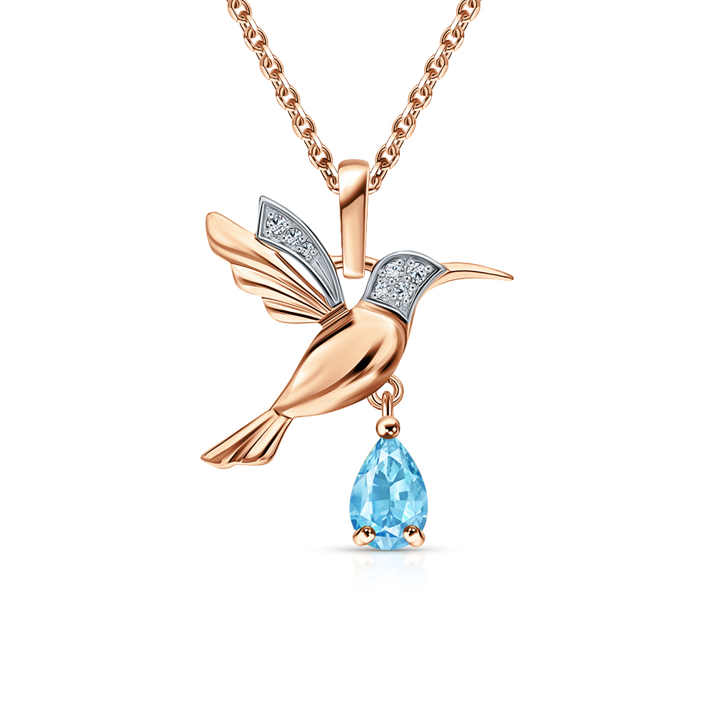 Золотая подвеска с бриллиантами природными и топазами природными