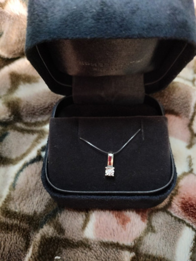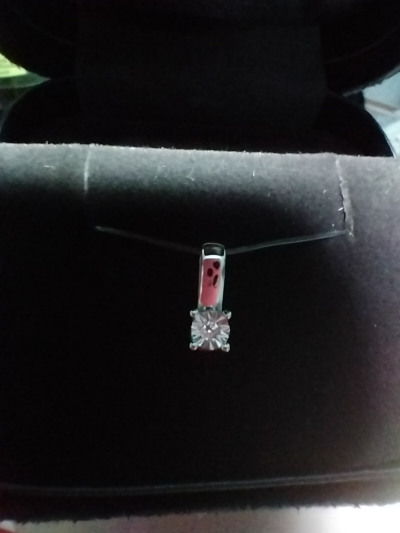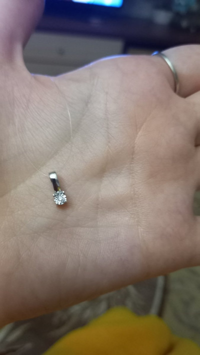 Красивая подвеска,сам бриллиантик махонький,но за счёт большого ложа с засечками визуально кажется большим