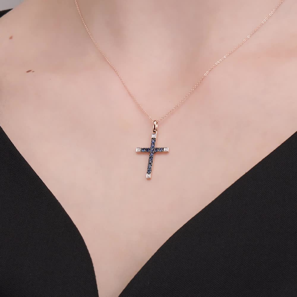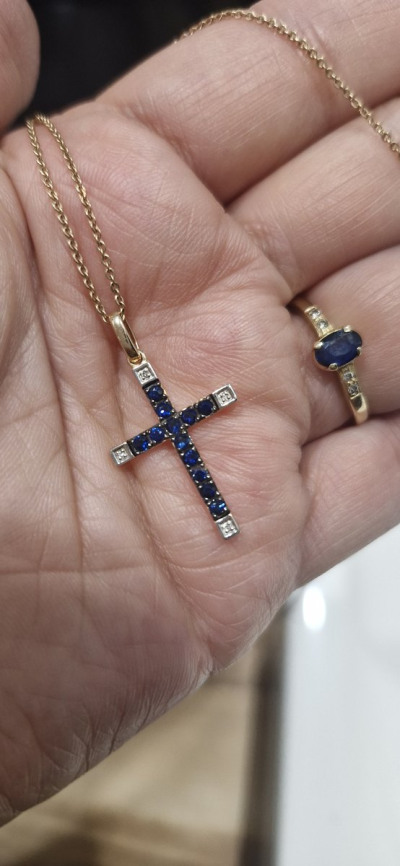 Золотая подвеска с бриллиантами природными и сапфирами природными