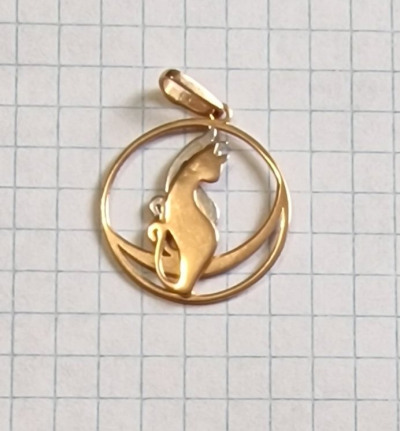 Еще один вариант кулона с котиками. Кулон крупный, из 2х видов золота, под длинную цепочку и свитера с горлом