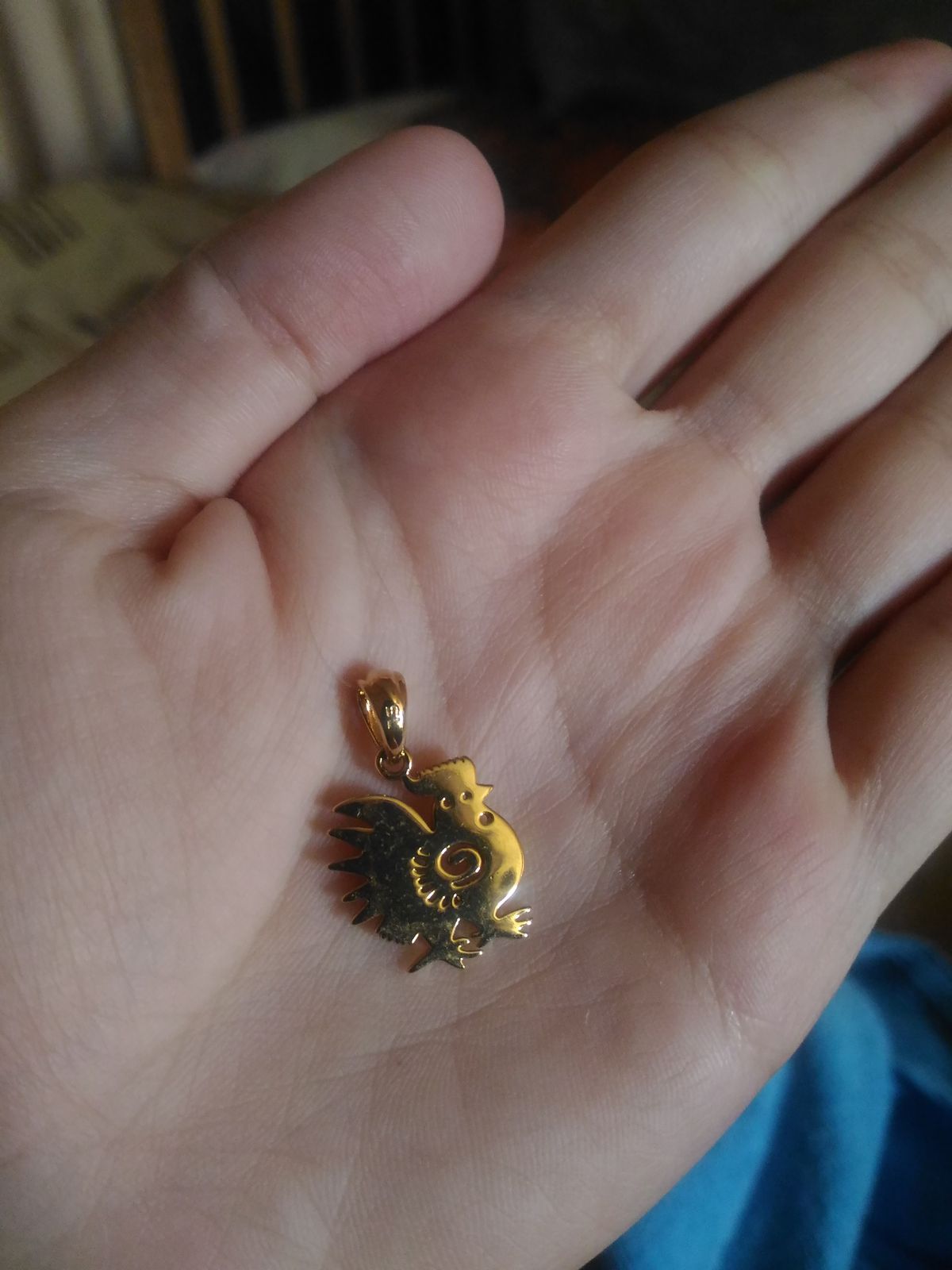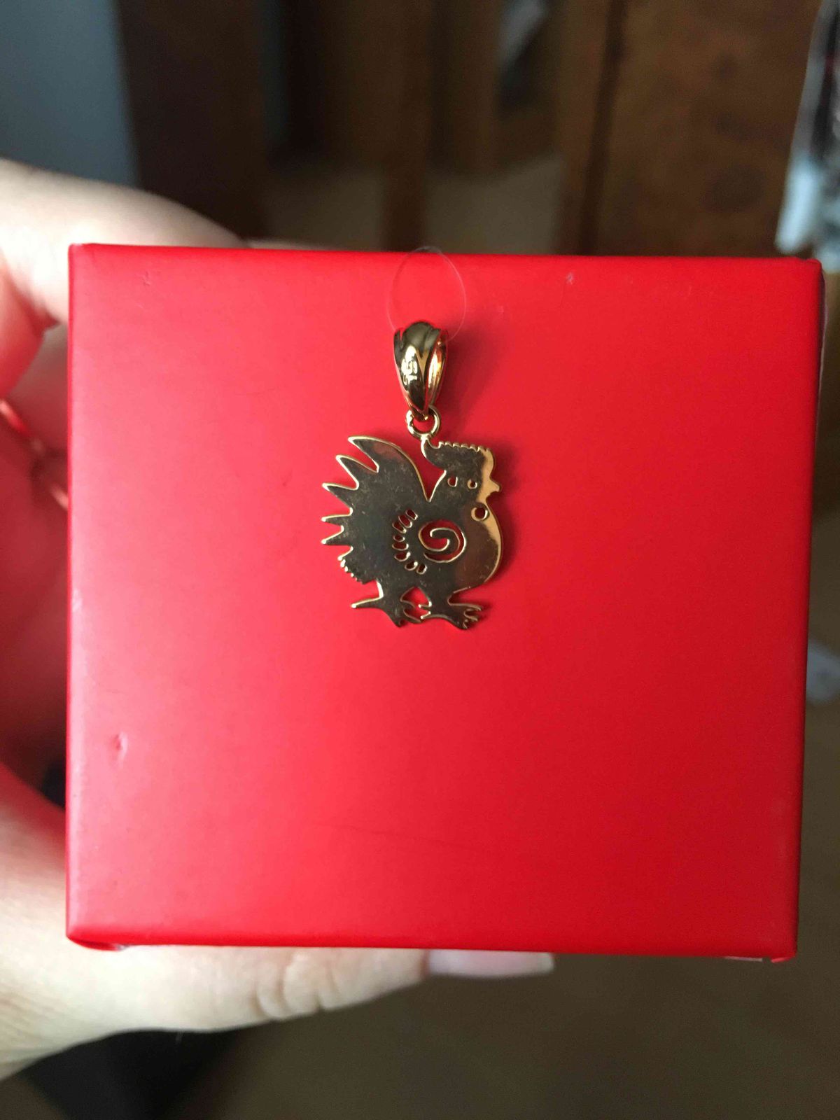 Случайно увидела на витрине этот кулон и не смогла удержаться. Купила в подарок для сестры-она родилась в год Петуха. Аккуратный,плоский, без лишних деталей кулон идеально смотрится.