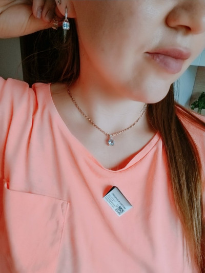 Очень красивая и нежная подвеска. Топаз яркий, насыщенный. Бриллиантики маленькие, блестят ярко. Куплена в комплект к серьгам для подарка.