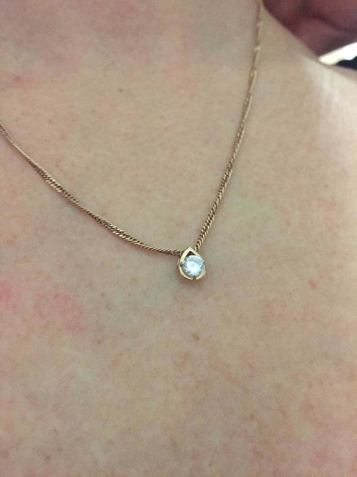 Очень довольна покупкой! Нежная и красивая капелька. Маленький камешек красиво сверкает. Хорошо смотрится на короткой цепочке. Рекомендую всем!