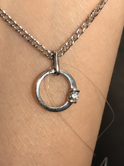 Очень милая подвеска из белого золота. Бриллиант красиво играет при любом освящении. Ушко узкое, подойдет не для каждой цепи.