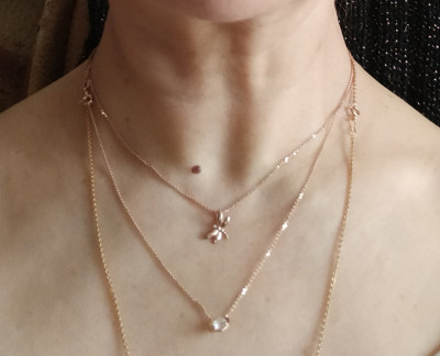Бриллиантик очень маленький, но подвеска смотрится оригинально. На тонкую цепочку очень хорошо подошла
