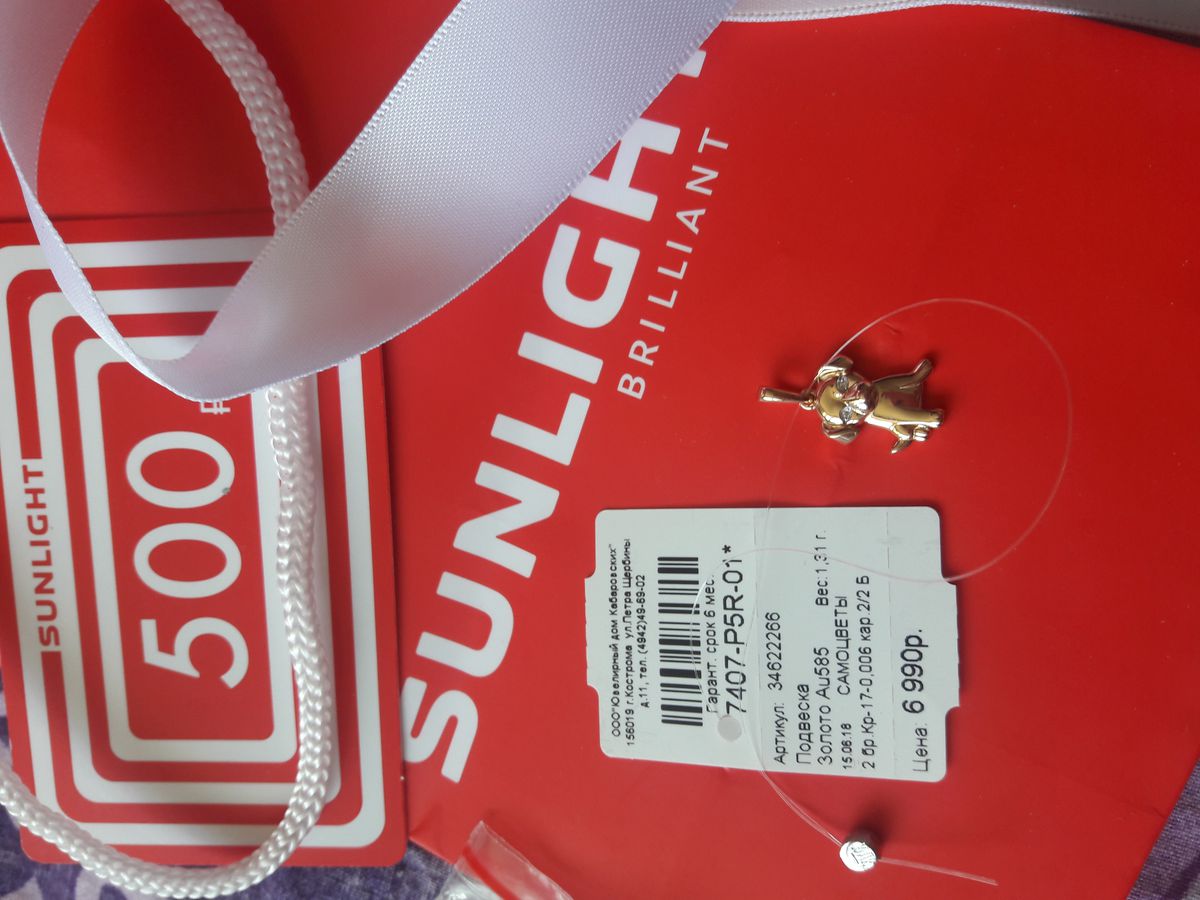 Приобретаю в SUNLIGHT ювелирные изделия не в первый раз, и каждый раз очень рада покупкам,купив кулон с символом года, осталась очень довольна, кулон очень выполнен тонко, каждая деталь в изделии сделана очень аккуратно)